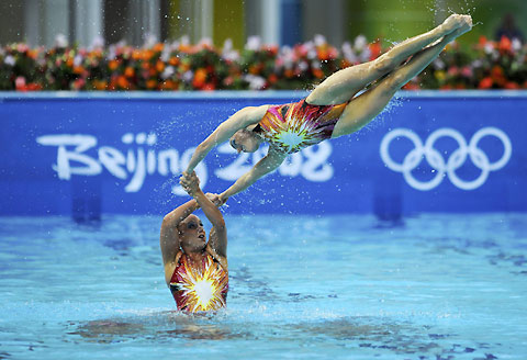 The U.S. team performs in their synchronised swimming team free routine final at the Beijing 2008 Olympic Games August 23, 2008. [Agencies]