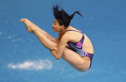 Guo Jingjing of China dives during the women's 3m springboard diving final at the National Aquatics Center during the 2008 Beijing Olympic Games in Beijing on August 17, 2008. Guo Jingjing of China won the gold medal in the women's 3m springboard diving final, followed by Julia Pakhalina of Russia with silver and Wu Minxia of China with bronze. [Agencies] More photos