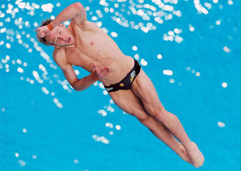 Australia's Matthew Mitcham dives on his way to gold August 23 2008. [Agencies]