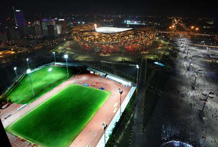 Olympic Green lights up Beijing skyline