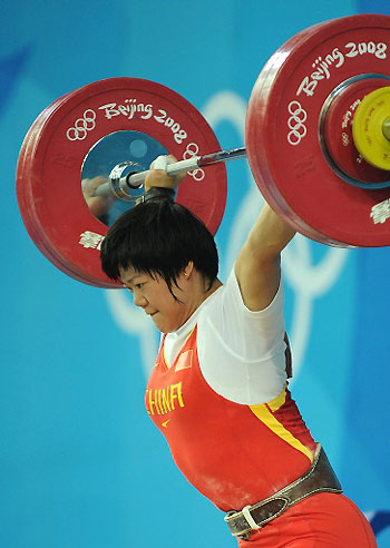 Liu Chunhong of China broke three world records to retain her Olympic champion title in the women's 69kg category at the Beijing Olympics. Liu, 23, snatched 128kg, which is the first world record created by Chinese at Bejing Games, jerked 158kg, totaling 286kg.