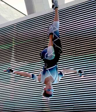 A man performs around the Olympic Green, north of Beijing on August 17, 2008. Performances brought by artists home and abroad have been staged in the Olympic Green during the Beijing Games. [Xinhua]