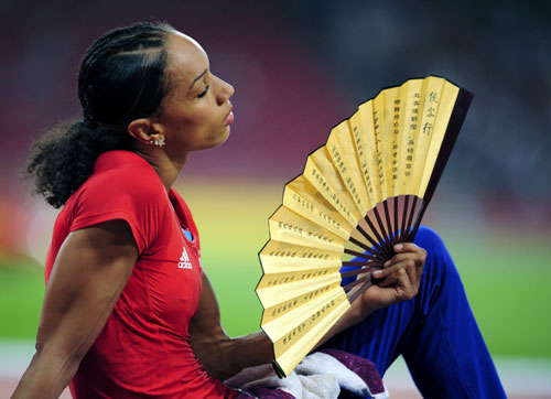 Jade Johnson of Britain cools down during the women's long jump athletics final in the National Stadium at the Beijing 2008 Olympic Games August 22, 2008.[Agencies]
