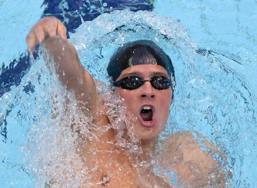 US swimmer Ryan Lochte swims to victory in the men's 200m backstroke final at the National Aquatics Center during the 2008 Beijing Olympic Games in Beijing on August 15, 2008. Lochte broke the men's 200m backstroke world record in winning Olympic gold in 1min 53.94sec.[Agencies]