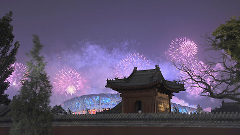 Fireworks display erupts near the "Bird's Nest" National Stadium during the closing ceremony of the 2008 Beijing Olympic Games on August 24, 2008. [Agencies]