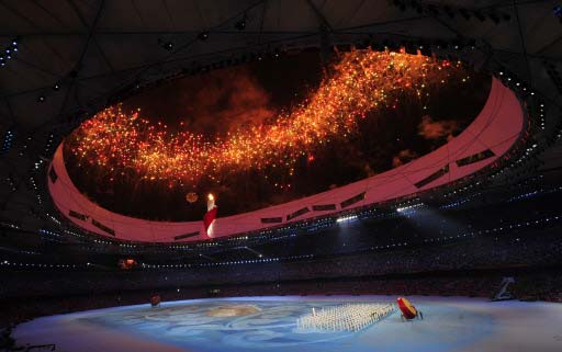 General view shows the National Stadium also know as the "Bird's Nest" at the start of the closing ceremony for the 2008 Beijing Olympic Games on August 24, 2008. [Agencies]