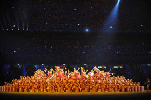 Entertainers perform during the closing ceremony of the 2008 Beijing Olympic Games at the National Stadium, or "Bird's Nest" on August 24, 2008. [Agencies]