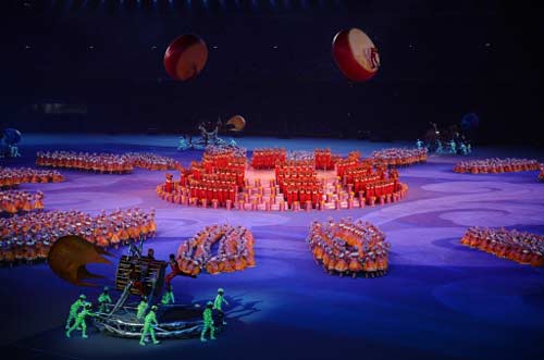 Dancers perform during the closing ceremony of the 2008 Beijing Olympic Games at the National Stadium also known as the "Bird's Nest" on August 24, 2008. [Agencies]
