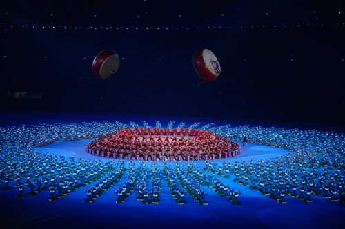 Dancers in fluoresent suits perform during the closing ceremony of the 2008 Beijing Olympic Games at the National Stadium also known as the "Bird's Nest" on August 24, 2008. [Agencies]