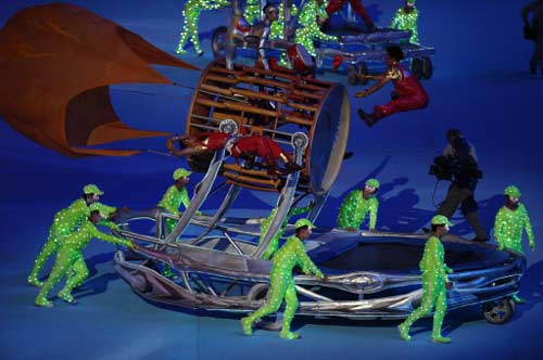 Dancers perform during the closing ceremony of the 2008 Beijing Olympic Games at the National Stadium also known as the "Bird's Nest" on August 24, 2008. [Agencies]