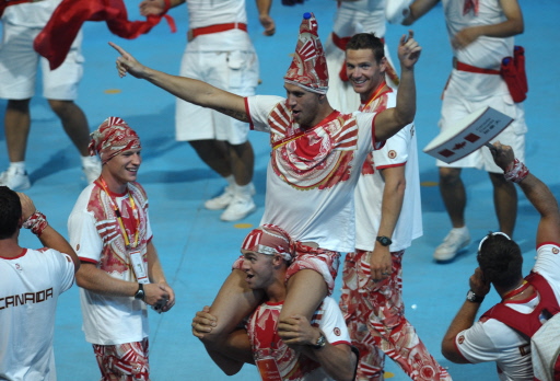 Canadian athletes parade during the closing ceremony for the 2008 Beijing Olympic Games at the National Stadium, also known as the "Bird's Nest" on August 24, 2008.[Agencies]