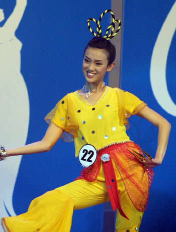 Jiang Xintian, who lit the Paralympic flame on Thursday, in this 2003 file photo. Jiang won the Media Focus prize in the Miss China Universe pageant in 2003 in Ji'nan, Shandong Province. [Xinhua]