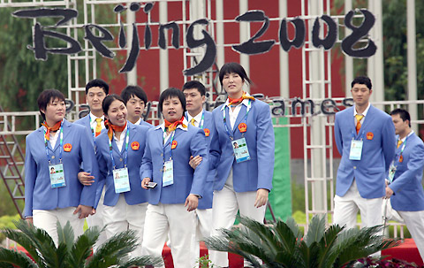 Members of the Chinese Paralympic delegation moves into the Paralympic Village, August 30, 2008. The Paralympic Village officially opened its doors on Saturday.[Xinhua]
