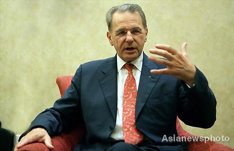 IOC President Jacques Rogge receives an exclusive interview with China Daily, China's only national English-language newspaper, in Beijing on September 17, 2008. [Photo by Xu Jingxing/China Daily]