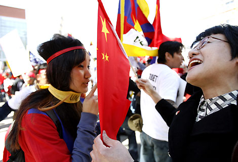 Protestors during the Olympic Torch relay in San Francisco, California April 9, 2008. [Agencies]