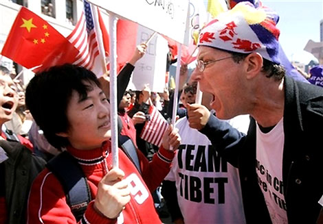 Protestors during the Olympic Torch relay in San Francisco, California April 9, 2008. [Agencies]