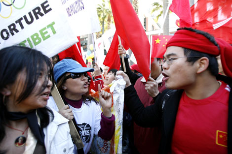 Protestors during the Olympic Torch relay in San Francisco, California April 9, 2008. [Agencies]