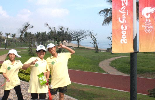 Local students are out in their thousands lining the streets and coastal paths bringing a carnival atmosphere to the proceedings of the Olympic torch relay in Haikou, May 6, 2008. Hot air balloons, roller blading flag waving youngsters, naval ships, countless camera crews, army trucks with cheering locals and seemingly thousands of students lined the streets Tuesday morning at the crack of dawn to give a joyous welcome to the Olympic Torch arrival to Haikou city, capital of Hainan province, South China. [chinadaily.com.cn/Brendan John Worrell]