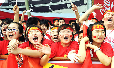 Spectators cheer during the Olympic torch relay in Changchun, Jilin province on July 14, 2008. [Xinhua]