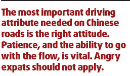 Despite the risks, many expats are taking up the motoring challenge. One of the major benefits of having a driver's license is the freedom it offers to explore more of this beautiful land. Expat drivers can enjoy taking off on a whim to explore the countryside without relying on a hired driver. It is a wonderful feeling driving past the Great Wall with friends in tow as you venture away for the weekend. Most expats come from car cultures, and driving is second nature. We first get behind the wheel as teenagers and this on-road experience is very helpful when driving on China's roads. What initially appears to be traffic chaos becomes a system, which can be safely negotiated once it is understood. To get a license, a potential driver needs to sit a road rules exam. (See breakout). The reference manual costs 150 yuan ($20), however, a license itself costs less than 30 yuan ($4). The most important driving attribute needed on Chinese roads is the right attitude. Patience, and the ability to go with the flow, is vital. Angry expats should not apply. Drivers will cut in front of you without indicators and warning, and this would normally cause some expat drivers, especially Westerners, to lose their cool. Drop-ins happen so often here, that easily-frustrated types are better off sticking with taxis. What is surprising is the lack of anger among local drivers. Despite some outrageous driving behavior (sudden U-turns in the middle of a busy highway is just one example), the majority of Chinese drivers have very short memories. I have never seen blinding road rage resulting from near misses, which occurs in the West. During my experience driving in America and Australia, I have seen drivers chase an "offensive" driver to the next set of traffic lights, get out of their car and punch their foe through the window. This rarely happens here. The other major driving attribute needed on China's roads is defensive-driving know-how. Motorcycle riders and truck drivers are more familiar with this mind set than the average car driver. Defensive driving means being acutely aware of the surrounding traffic environment. Experienced motorcyclists look at their mirrors every three or four seconds, as do truck drivers. They are always scanning ahead 200 to 300 meters, looking for potential danger. They are watching side streets for cyclists, school kids and other traffic. Most car drivers do not operate in such a focused way, but on China roads, especially on country roads, this defensive action is essential for survival. On a recent drive to Inner Mongolia, I was cruising a lovely stretch of road, which cut through spectacular countryside. The sky was a brilliant blue, cows grazed, and horses galloped over grasslands, as they did back in Genghis Khan's time. A drive like this is the reason why expats get a license. About 300 meters ahead there was a cross road and an overloaded truck was jolting toward the main road. The driver swerved into my path but I was in no danger. I braked as soon as I saw the blue big rig because I guessed his next move. Other dangers on rural roads are convoys of trucks and the maddening speeds drivers use to overtake them. The overtaking game is a bit like playing chicken. Don't get caught up in this madness. If a group of drivers are on your tail, let them pass. Don't be pushed into 140km/h speeds. The faster you drive, the less reaction time you have to stop. Create space by slowing down, or when the road is clear, speeding up. Although we call them road deaths, roads rarely kill people. Drivers do. More than 90 percent of road trauma is caused by human behavior. Speeding is the major killer, causing more than 30 percent of road deaths, followed by driver fatigue and drunk driving. By expecting the worst and being constantly alert, driving in China, and anywhere, becomes safer. The extra concentration and focus needed on China roads is more draining than back home and fatigue creeps in faster. Make sure you stop, revive and survive every two hours. It is a good idea to get a map and plan your trip before you head off on a long drive. Thousands of big service stations have mushroomed on China's fast expanding road network, however there is a plethora of small towns, which offer interesting rest stops. This is the real China you don't see in Shanghai, Beijing and Guangzhou. Talk to Chinese friends to get ideas before the trip. They may know some secret hideaways and can also advise about toll road prices.