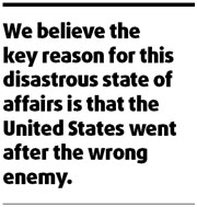 We believe the key reason for this disastrous state of affairs is that the United States went after the wrong enemy. What Washington should have done was to seek the support of the Arab-Islamic world to isolate and drive al-Qaida into a corner.