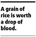 Everyone needs to be conscious of the global food situation. Policymakers will have to prepare short- and long-term measures to cope with the food-supply problems, and, in the meantime, our restaurateurs, cooks at home, and distributors of produce should begin a fresh drive to prevent waste. As the main slogan for the campaign, we may borrow the old saying: "A grain of rice is worth a drop of blood."