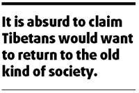 It is absurd to claim Tibetans would want to return to that kind of society. The Tibetan people are now infinitely better off. Earlier, they were starving, enslaved, brutalized, illiterate.