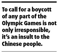 To call for a boycott of any part of the Olympic Games is not only irresponsible, it's an insult to the Chinese people.
