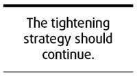 The tightening strategy should not change unless significant signs of economic slowdown surface due to a decreasing foreign demand following a downtrend in the world economy.