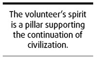 Updated: 2008-06-16 07:35 Serving as volunteers is a global phenomenon that has been around for decades. For instance, many people volunteered to go and save lives on the battleground in the name of justice as early as the two world wars. Dr Norman Bethune, the Canadian surgeon who went to China and is remembered forever by the Chinese people for making the ultimate sacrifice while helping China's War of Resistance against Japanese Aggression during World War II. He was one of the outstanding examples of volunteering endeavor. Much closer to this time, a large number of volunteer teams rushed to the Japanese victims' rescue following the devastating Hanshin earthquake in 1995. The Japanese government later promulgated a law specifically to nurture and regulate volunteer groups.