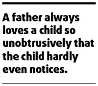 One man found a neatly folded 1,000-yen note tucked away in his late father's wallet. It was money the man had given to his father from his first paycheck. The father, a plasterer by profession, had been wont to say: "Whenever you are in doubt, think of what your dad would do. It won't make you rich or famous, but at least you'll never have to worry about straying from the straight and narrow." The son has always lived by these words of wisdom. The expression oya no senaka o mite sodatsu, literally, "(a child) grows up looking at his or her parents' back", means that parents teach children by example. One cannot see one's own back, nor can one cover its imperfections with makeup. A child sees a parent's back completely "as is". While it is easy to sire a child, becoming a father is another matter. Novelist Takeo Arishima (1878-1923), who was one of the co-founders of the Shirakaba (White Birch) literary movement, noted in "Chiisaki Mono-e" (To my little ones), which he dedicated to his children: "The fact that you have - or had - someone who loved you totally and unconditionally will be important to you forever". These words seem to echo feelings I had after reading the above-mentioned collection of essays. In another piece, a young woman in her 20s, whose father is deceased, visited the small factory where he had worked for 37 years. There, she realized for the first time that her father "had made many little screws in order to raise me to be what I am today, from the top of my head to the tips of my fingernails". I am sure her father always loved her so unobtrusively that she hardly even noticed. The Asahi Shimbun (China Daily 06/19/2008 page9) |