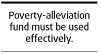 Updated: 2008-06-20 07:43 How to use the poverty-alleviation fund most effectively not only makes a difference in reducing the level of poverty among villagers in destitution, but also tests the wisdom of officials managing the fund and their dedication to their work. A circular jointly issued by five central government departments has set guidelines for the task. It requires local governments to conduct coordinated auditing and investigations in the coming months to find out irregularities in the use of the fund and also to check whether such a fund is used in an effective manner. Consecutive auditing of the fund by the National Audit Office in the past five years has considerably reduced the number of cases of the poverty-alleviation fund being diverted or embezzled. And as a result, the focus of supervision needs to be shifted to how efficiently the fund earmarked from the central coffer is used.