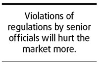 However, to crack down on false information and rumors spread to manipulate stock prices is just one of the duties the securities watchdog must fulfill, no matter what the market sentiment is. More important, the current plunge of Chinese shares is clearly not a result of too much bearish gossip. Shooting the messengers simply does not help address the real causes that keep undermining investors' confidence. China's tightening monetary policy, a needed response to soaring domestic consumer inflation, stands out as one of the most obvious driving forces behind the current steep decline of Chinese stocks for it could cut corporate profits. Admittedly, this factor is beyond the securities regulator's control. Yet, the market watchdog is fully capable of addressing another concern about the market's ability to absorb fresh supplies of shares. Domestic investors have long worried about that the equities supply would overwhelm demand. Belatedly, the securities authorities vowed that they will work to create reasonable balance between supply and demand in the stock market by adjusting the timing of fund-raising activities. Worse than an oversupply of equities are rampant market irregularities that seriously erode the fundamentals for the long-term development of China's stock market. It has been reported recently that a former vice-chairman of the stock watchdog was now being investigated for alleged corruption and misconduct in connection with the securities market. Such violations of securities regulations by senior officials will hurt the capital markets more seriously than any rumor can do. The CSRC should first put its own house in order and then fight an all-out war against various market irregularities. (China Daily 06/25/2008 page8) |