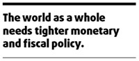 Updated: 2008-07-04 07:41 The global economy is a runaway train that is slowing, but not quickly enough. That is what the extraordinary run-up in prices for oil, metals, and food is screaming at us. The spectacular and historic global economic boom of the past six years is about to hit a wall. Unfortunately, no one, certainly not in Asia or the United States, seems willing to bite the bullet and help engineer the necessary coordinated retreat to sustained sub-trend growth, which is necessary so that new commodity supplies and alternatives can catch up. Instead, governments are clawing to stretch out unsustainable booms, further pushing up commodity prices, and raising the risk of a once-in-a-lifetime economic and financial mess. All this need not end horribly, but policymakers in most regions have to start pressing hard on the brakes, not the accelerator. Don't look to the US for leadership in a presidential election year. On the contrary, the US government has been handing out tax-rebate checks so that Americans will shop until they drop, and now Congress is talking about doing more.