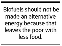 With such clarification about the root cause of the steep hike in food prices at present, it is no longer business as usual for plant-derived biofuel programs aimed to reduce some countries' emissions of greenhouse gases and their dependence on imported oil.