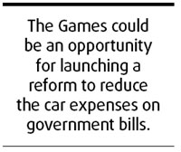 Updated: 2008-07-30 07:31 To control the air pollution and ensure smooth transportation during the forthcoming Olympic Games, Beijing, the host city, has taken numerous measures. One of them that caught my attention was that 30 percent of the cars owned by the central administration, city government, institutions affiliated to government, businesses and factories in Beijing were banned from the road between July 1 and July 19. The figure becomes 70 percent from July 20 to September 20, taking the number of off-road vehicles owned by these institutions to 210,000. A simple arithmetic tells us that the total numbers of cars owned by governments, businesses and other institutions are at least 300,000 in Beijing. How much do these cars cost for maintenance and daily use? If the average expenditure on purchasing a car is 250,000 yuan ($36,765), it takes 75 billion yuan ($11 billion) for 300,000 cars. If 10 percent of these cars are to be replaced every year, it costs at least 7.5 billion.