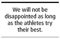 While we wish our athletes the best at the coming Games, we will not be disappointed as long as they try their best, and display fine sportsmanship.