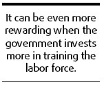 But it is reality. The ministry is just beginning to develop a special headcount for rural workers. But the cold fact is workers from rural areas are the foremost victims of the shrinking job market. The hardest-hit businesses are labor-intensive manufacturing factories living on exports. They are the biggest employers of low-cost rural laborers. Our special vulnerability in the current crisis has accentuated the leadership's emphasis on upgrading industrial structures. And it actually bestows upon us such a golden chance. That explains, and to a great extent justifies, some local governments' policy of no-helping-hand for labor-intensive firms. But it makes sense only when the subsequent job loss is taken care of properly. The central government's decisions to help the 40-million-job textile industry and postpone implementation of the minimum wages mechanism are great ideas to assuage the pains. Massive job cuts will not only dampen hopes on domestic consumption, but also have the potential to end up becoming a destabilizing factor. But this should not be forever. Decision-makers must think of the long term while shooting the immediate troubles. It is a good idea to take advantage of the changes in the job market and prepare the less-than-skillful rural workers for the market's demand for better-trained laborers. The government has made up its mind to put more into rural development. The under-developed countryside deserves better infrastructures. But it can be even more rewarding when the government invests more in training the labor force. (China Daily 11/21/2008 page8) |