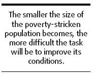 The smaller the size of the poverty-stricken population becomes, the more difficult the task will be to improve its conditions. As a result, more efforts from the government will have to be made.