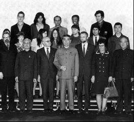 Premier Zhou Enlai meets the visiting US "ping-pong delegation" on April 14, 1971.