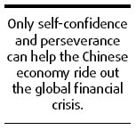 Updated: 2009-01-05 07:31 The great uncertainties that the world economy is facing will likely make this year a very difficult one for almost all countries. But a poor start does not guarantee pessimism for the Year of the Ox. The ox is associated in this country with the character of high resolution. So the Chinese people are justified to have every confidence in their abilities to overcome all the difficulties ahead. Though things can turn even more ugly before the economic slowdown is arrested later this year, Chinese consumers and companies have no reason to panic. Instead, only self-confidence and perseverance can help the Chinese economy ride out the global financial crisis. Last year was surely a big year for China not only because of the grand Olympic Games Beijing hosted but also for all the sad and memorable events the country witnessed through the year.