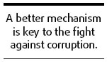 Updated: 2009-03-02 07:44 In an online communication with netizens at the weekend, Premier Wen Jiabao said that excessive concentrations of power bred corruption, and that effective checks are needed. The involvement of almost all leaders of a State-owned enterprise in a recent corruption case is perhaps the best illustration of Premier Wen's point. The announcement of this case by the State-owned Assets Supervision and Management Commission of the State Council last week is a reminder that supervision of leaders of State-owned firms is still far from watertight. This incident coincides with a clarion call for reducing salaries of leaders in these enterprises. Another investigation suggests that quite a number of them have violated rules by holding shares in their own firms or holding down sideline positions for extra pay. As Premier Wen said, a better system is key to the fight against corruption. State-owned firms are supposed to be owned by all citizens in name. But it is impossible and unrealistic for all citizens to participate in their corporate management models.