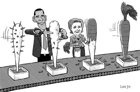 Updated: 2009-03-12 07:46 US Secretary of State Hillary Rodham Clinton has been busy mending fences with the rest of the world. She has traveled widely to East Asia, the Middle East and Europe since taking office last month, after the Bush administration left a slew of diplomatic problems. The US is now actively rebuilding its image overseas. In a new foreign policy based on "smart power", the Obama administration wants to stress diplomacy and development as much as defense to revive the US standing in the world. The "preliminary conversations" between the US and Syria last week represent an apparent softening of US policy toward a country the US sees as a linchpin for peace in the Middle East. The US dispatched Dan Shapiro of the White House's national security council and Jeffrey Feltman, the State Department's top Middle East diplomat, to Syria. With Washington seeking to "reset" relations with Russia, NATO announced it would restore full diplomatic ties with Moscow. Although "reset" was misspelled as "overcharge" in Russian on the symbolic gift - a red button - Clinton gave her Russian counterpart Sergei Lavrov, the gift underscored the US's friendly gesture. The Obama administration moved closer to resuming diplomatic contact with Iran as Clinton proposed an international meeting on Afghanistan on March 31 that could include "key regional and strategic countries". In that case, it would bring US officials face to face with their longtime adversaries. In the past eight years the Bush administration had isolated the US from the rest of the world, relying on its hard power. This kind of power includes guns, bombs, tanks, Humvees, Hueys, M16s, all about blood and guts. Now things seem to have gone the other way, toward smart power. The kind favored by Hillary Clinton. In her opening statement at her confirmation hearing before the Senate Foreign Relations Committee as the Secretary of State-designate, she said "we must use what has been called smart power, the full range of tools at our disposal - diplomatic, economic, military, political, legal, and cultural - picking the right tool, or combination of tools, for each situation. With smart power, diplomacy will be the vanguard of our foreign policy." Her words remind us of soft power, the kind preferred by certain thinkers and political scientists, including the most prominent Joseph S. Nye, Jr, the Sultan of Oma Professor of International Relations at Harvard. The power derives from movies, books, songs, ideals, diplomacy and moral authority. All about hearts and minds. Clinton believes in the ancient Roman poet Terence's declaration that "in every endeavor, the seemly course for wise men is to try persuasion first". Phew! She wants to prove she is a wise woman. Clinton will use all the tools of power in concert to reverse the trajectory of American decline.