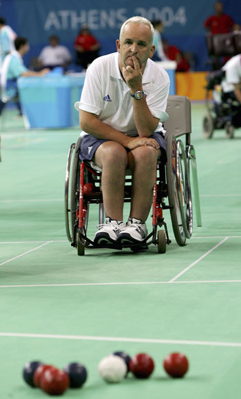 The match is started by throwing the white target ball or the "jack" into the playing area. The same player also rolls the first Boccia ball as close as possible to the jack. The athletes use their hands, feet or an assistive device where required, to propel the balls. Thereafter the opposing team throws until they get a ball closer to the jack or until they have thrown all of their team's balls. Play then returns to the first team. The end continues in this manner until both teams have thrown all of their balls.