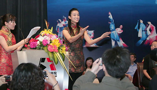Jiang Xintian, who lit the Beijing Paralympic flame, uses sign language to host TV programmes in this May 25, 2006 file photo. Beijing is geared up to provide better service for Paralympians during the Paralympic Games. [Xinhua]