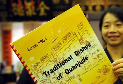 Such menus, printed in Chinese and English versions, can be found at Quanjude's oldest outlet in Qianmen Street south of Tian'anmen Square in downtown Beijing. "We invited Braille teachers to render 120 classic dishes into Braille so as to let guests who are visually impaired freely choose their favorite dishes," said Wang Xiaoshan, vice general manager of the Qianmen outlet.