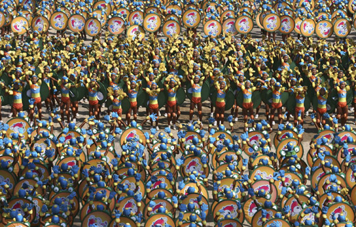 Students from the Tagou martial arts school practice at a training base on the outskirts of Beijing on Friday. More than 2,000 students from the school in Henan province will perform during the opening ceremony of the 2008 Paralympic Games on Saturday. [Agencies] more photos