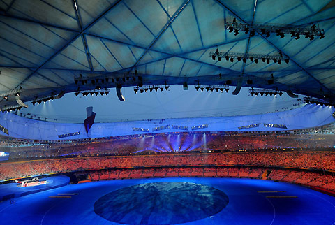 A general view of the Chinese National Stadium, dubbed the "Bird's Nest", in this photo taken September 6, 2008. The Beijing Paralympic Games kicked off Saturday night. [Xinhua]