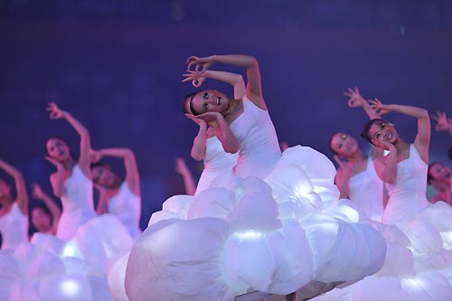 Performers dance during the opening ceremony of the 2008 Beijing Paralympics at the National Stadium on September 6, 2008. [Xinhua]