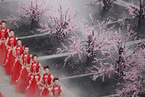 Ceremony hostesses stand at the the opening ceremony of the Beijing 2008 Paralympic Games at the National Stadium September 6, 2008.[Xinhua]